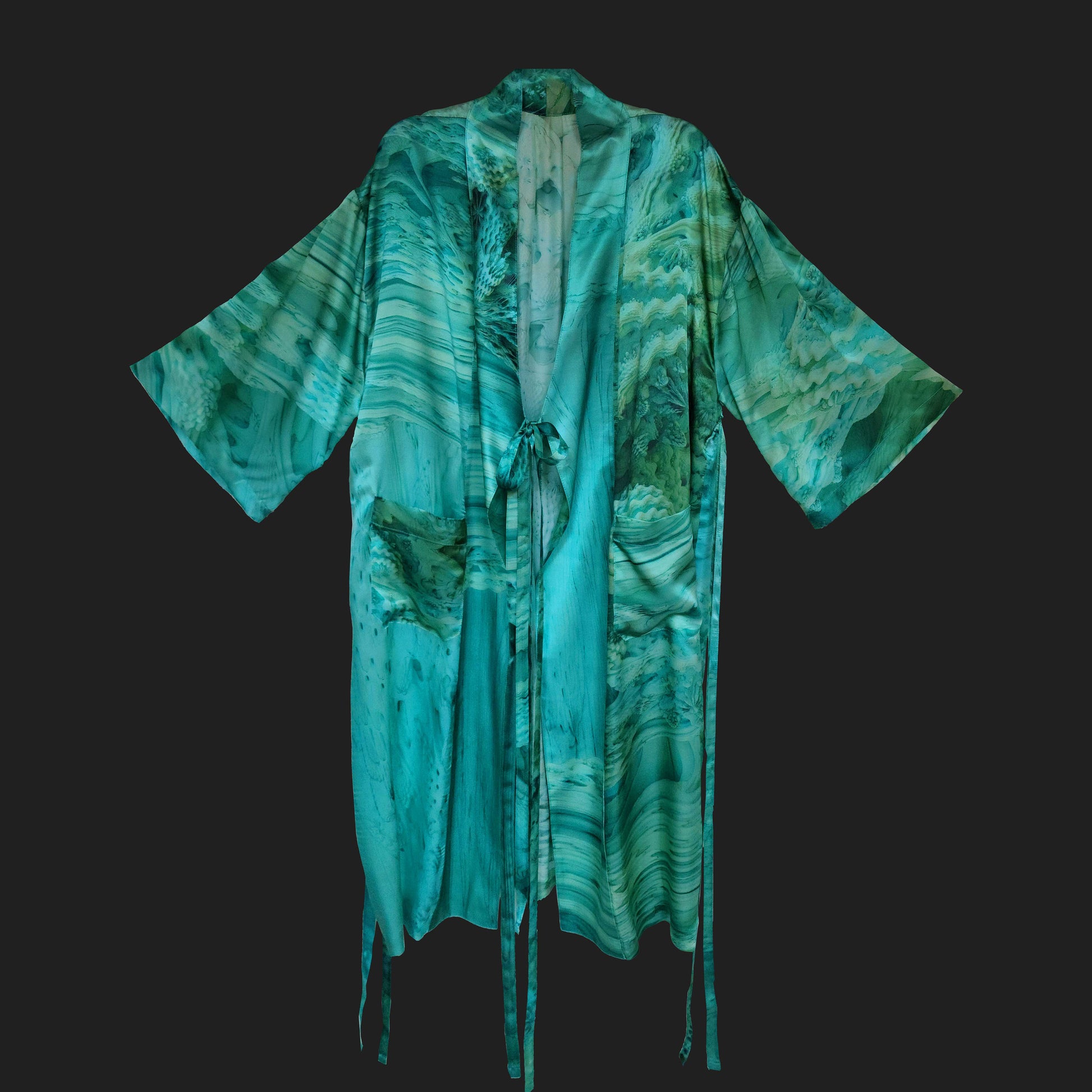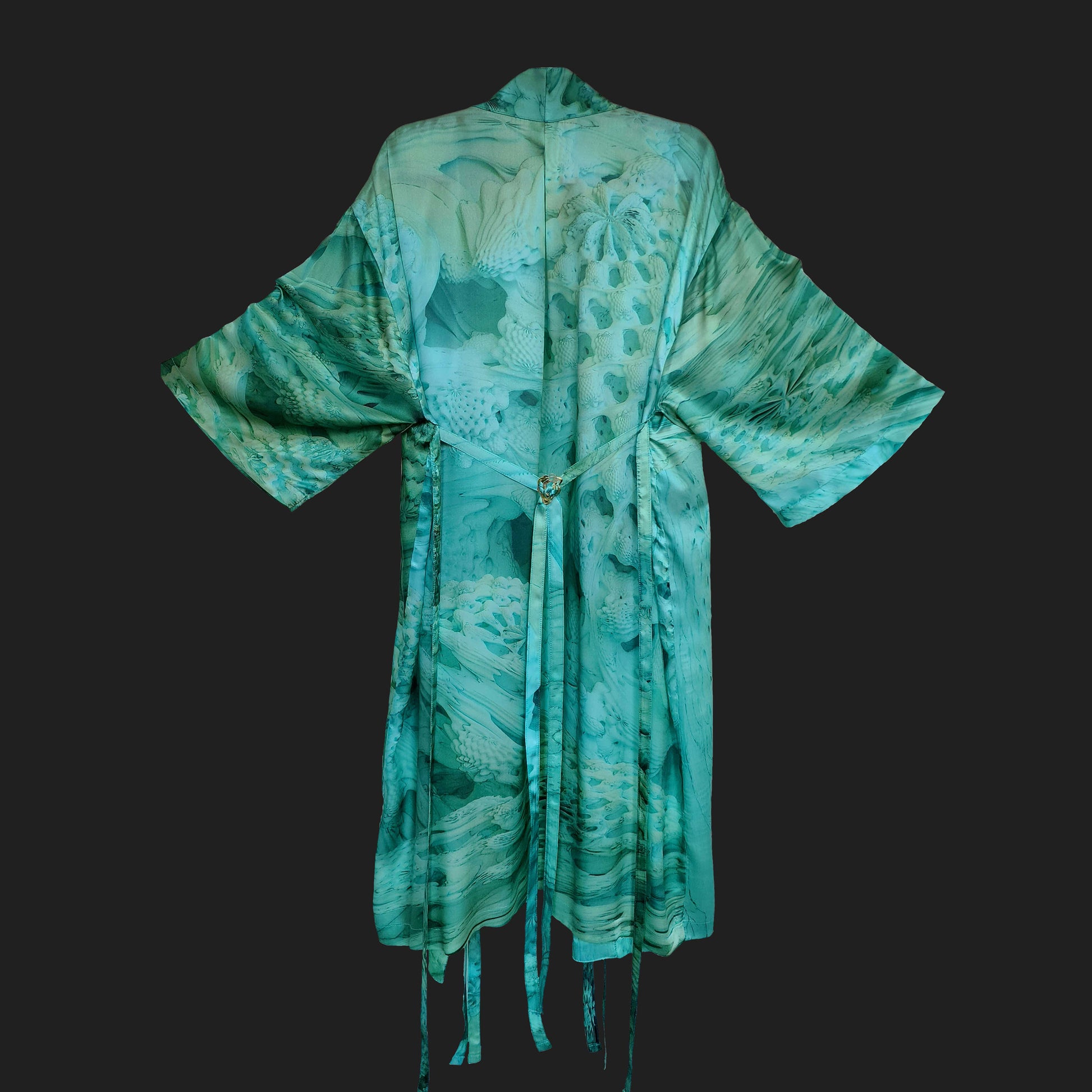 Named for the goddess-sorceress Circe’s home island, AEAEA features ten limited edition silk robes cut from a large-scale artwork, printed on a single length of silk.